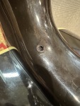 -The strap button on the heel has been snapped off with part of the screw still inside the heel.