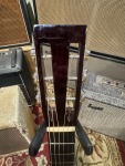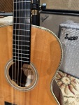 -The guitar came to us in need of a bridge reglue. It has received a professional reglue and is now totally stable and plays great! It is also worth noting that there is a line across the bridge, visible in a close-up photo. It is difficult to tell if this is just a mark in the wood or a previous repair, but it is not a structural concern, just cosmetic.